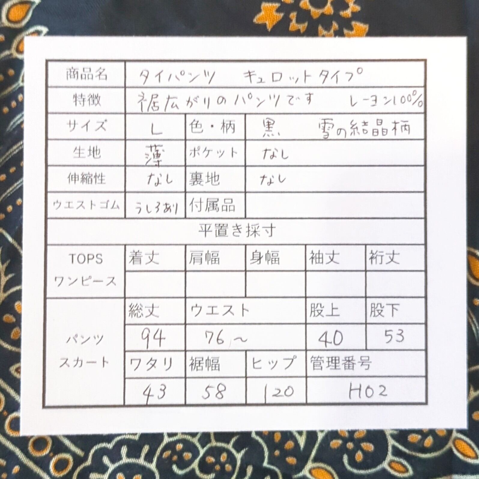 タイパンツ キュロット 雪の結晶柄 黒 レーヨン L H02