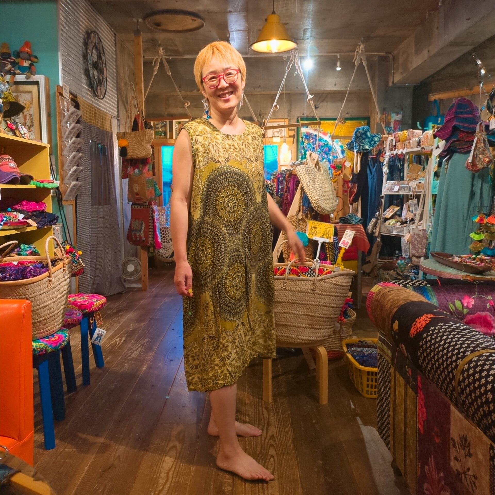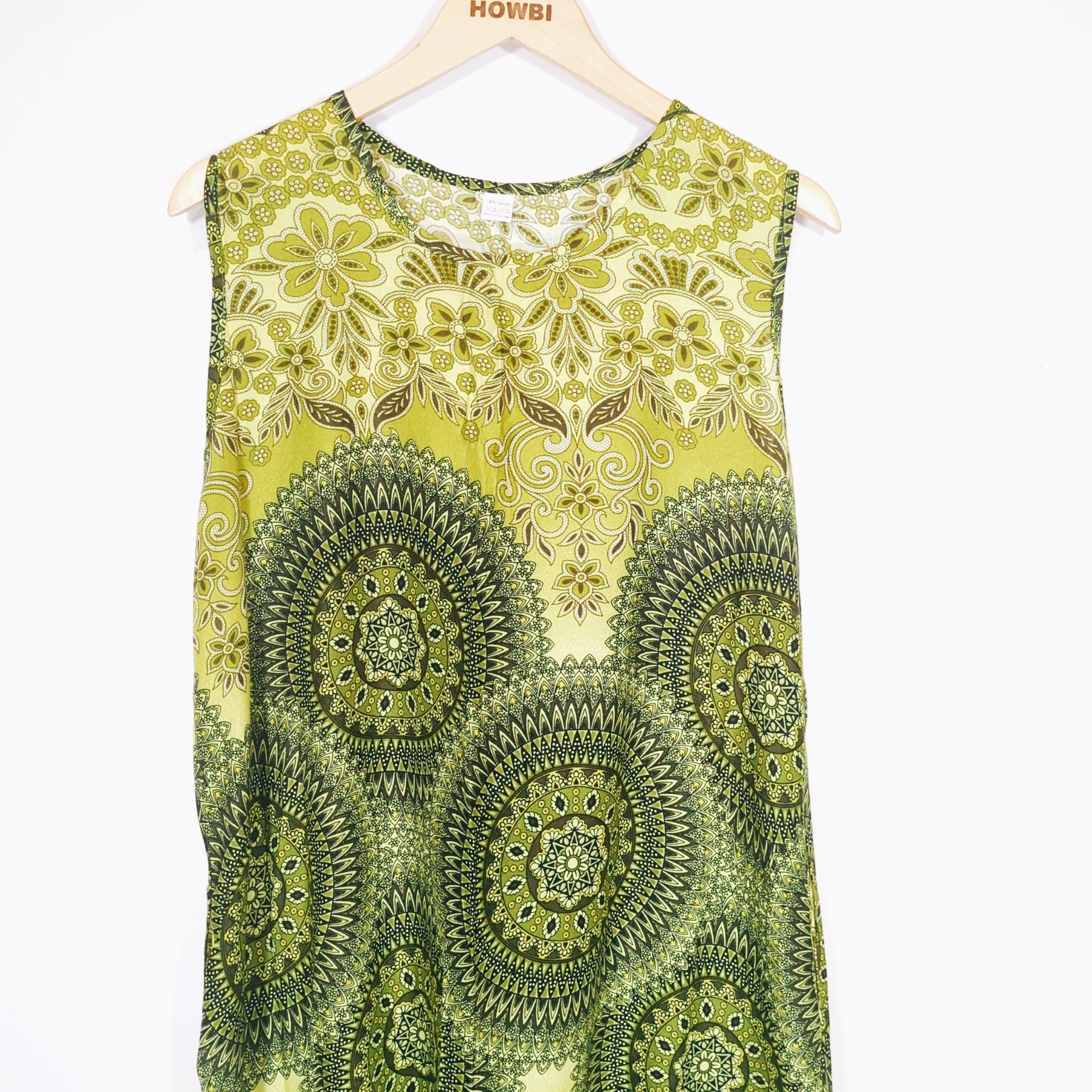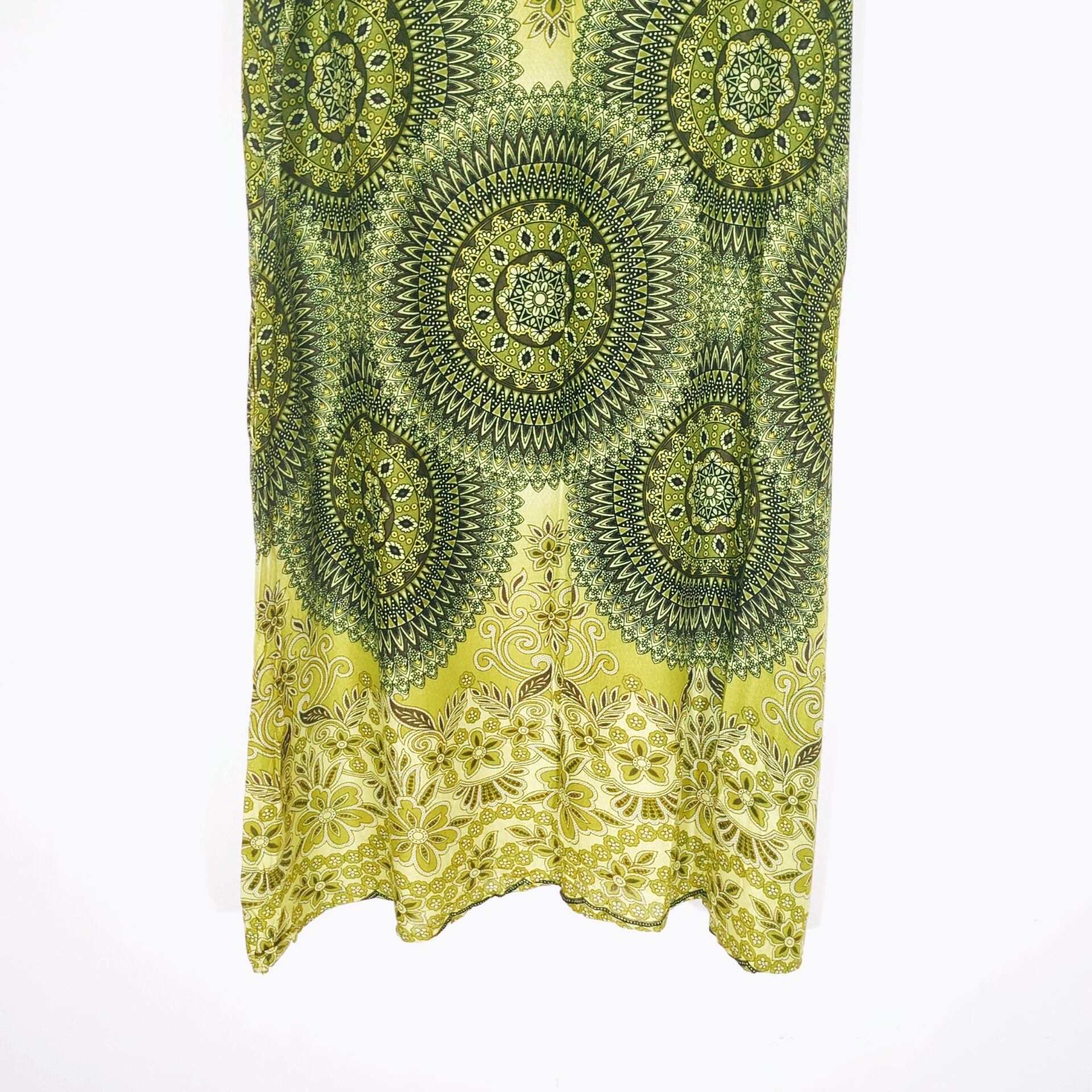 ノースリーブワンピース W09 黄緑 曼荼羅柄