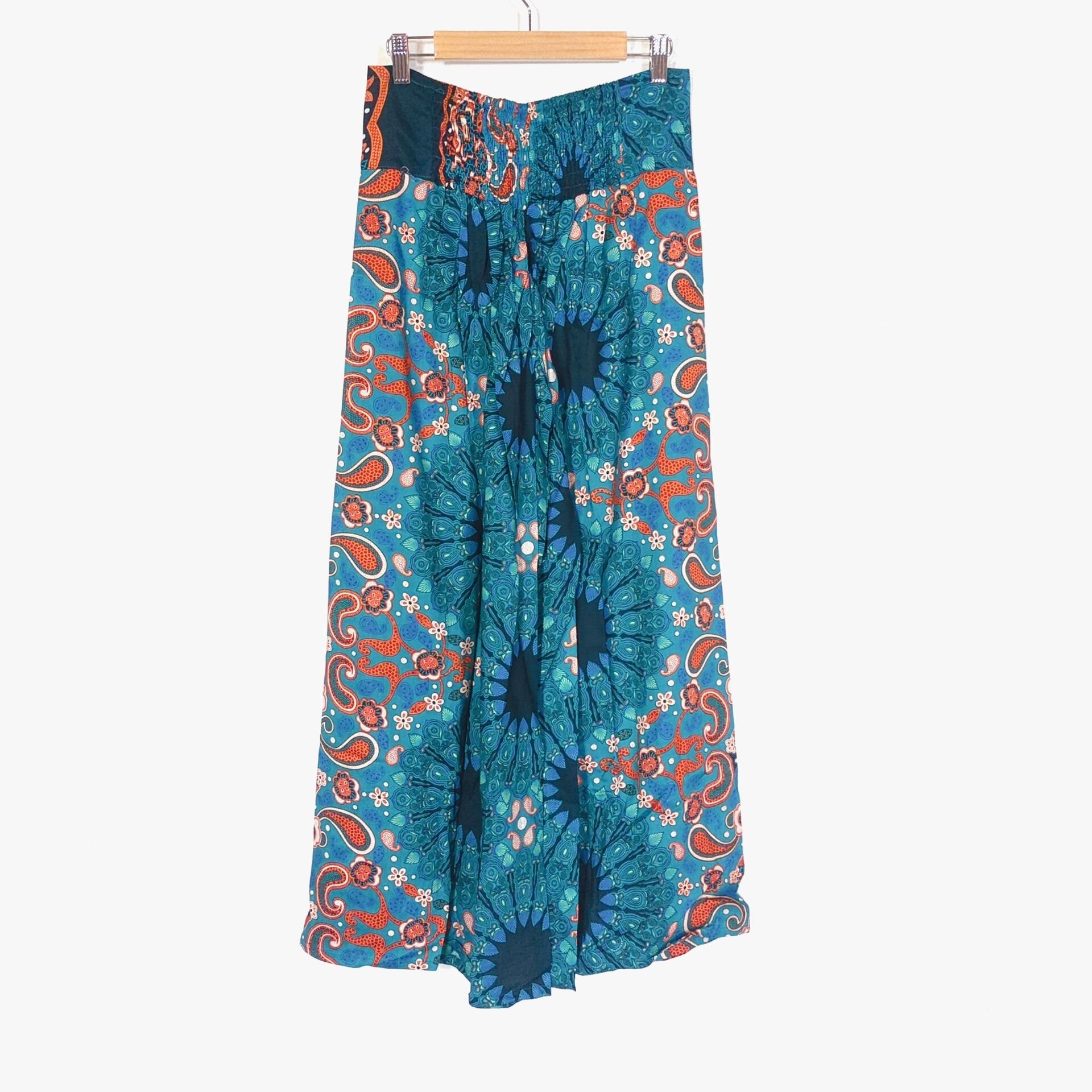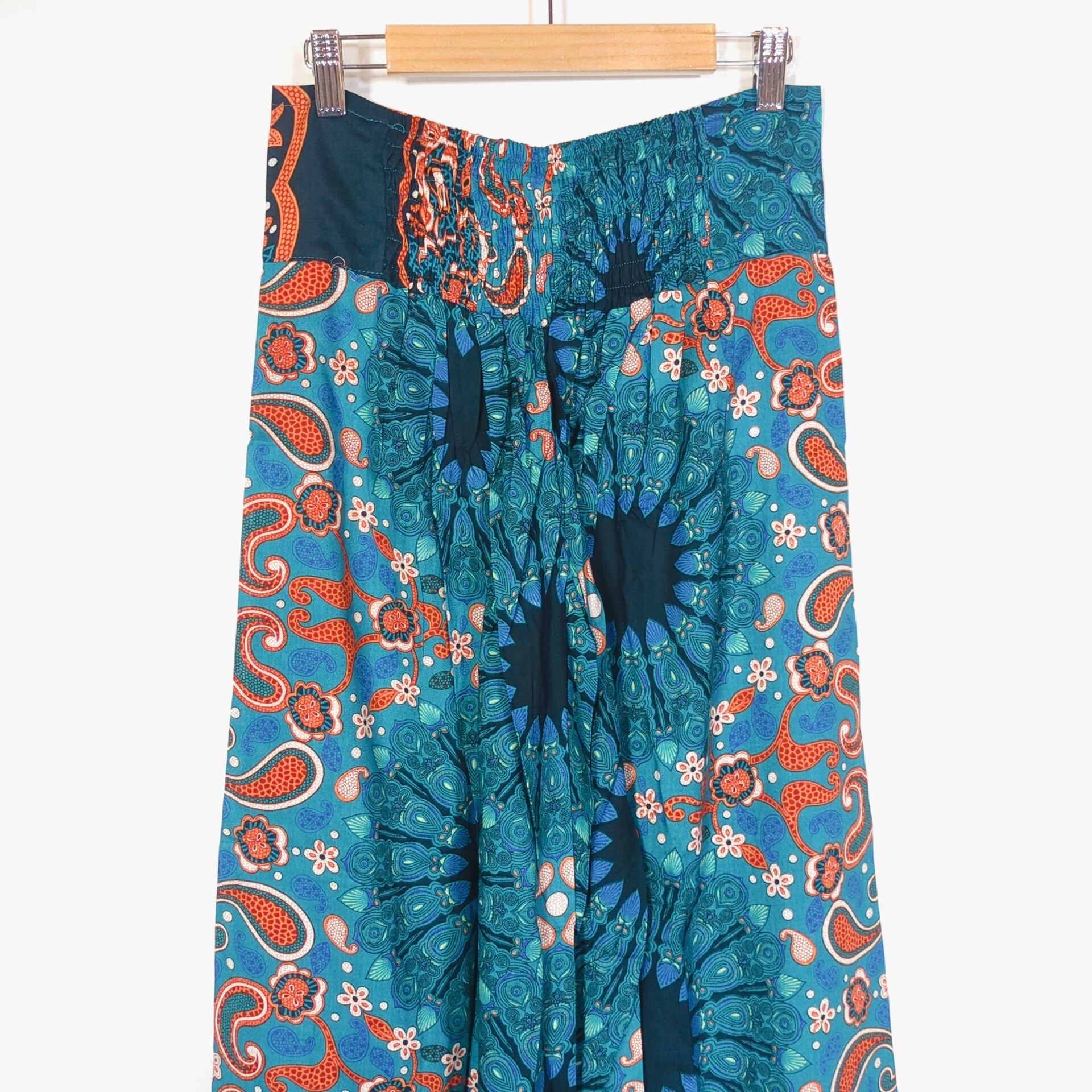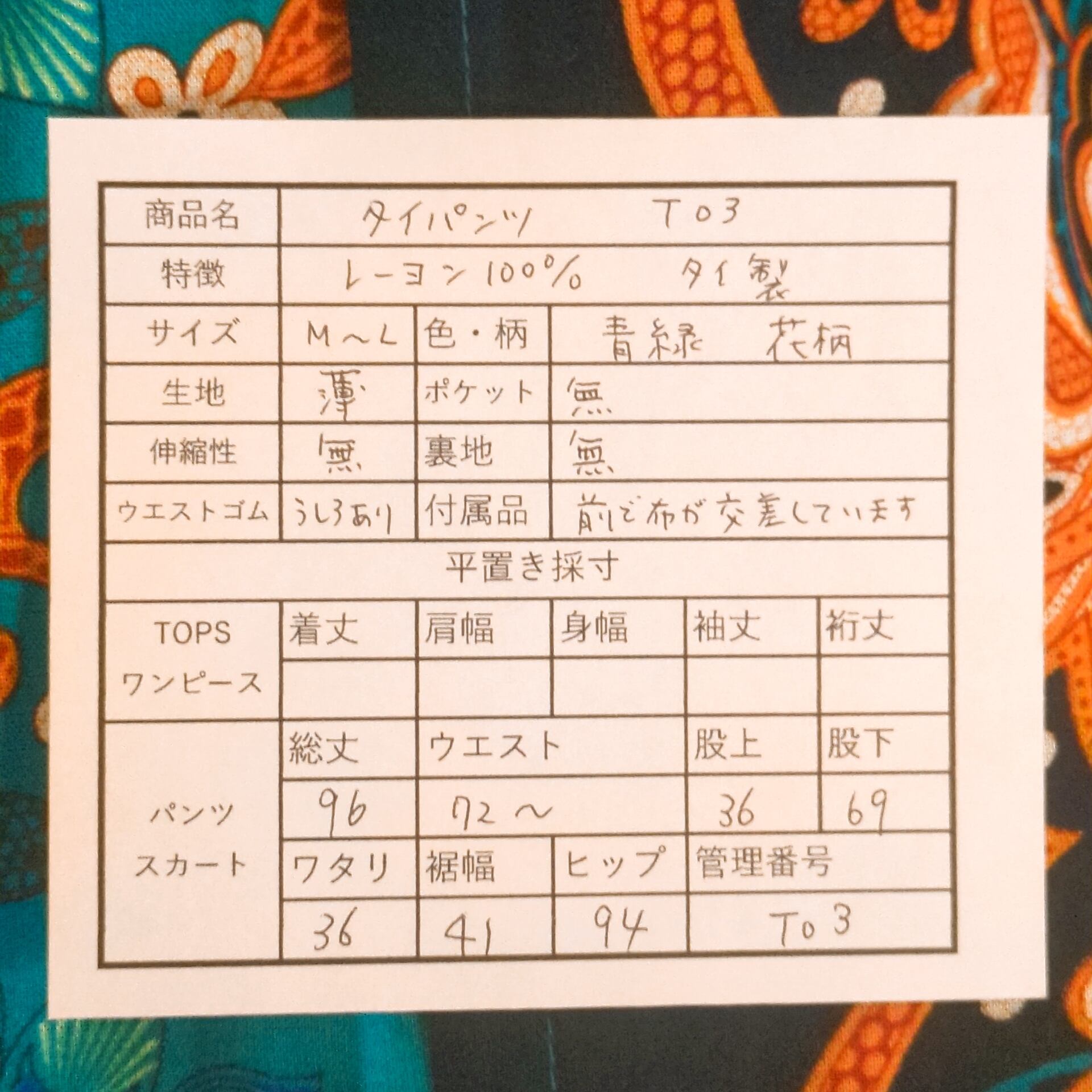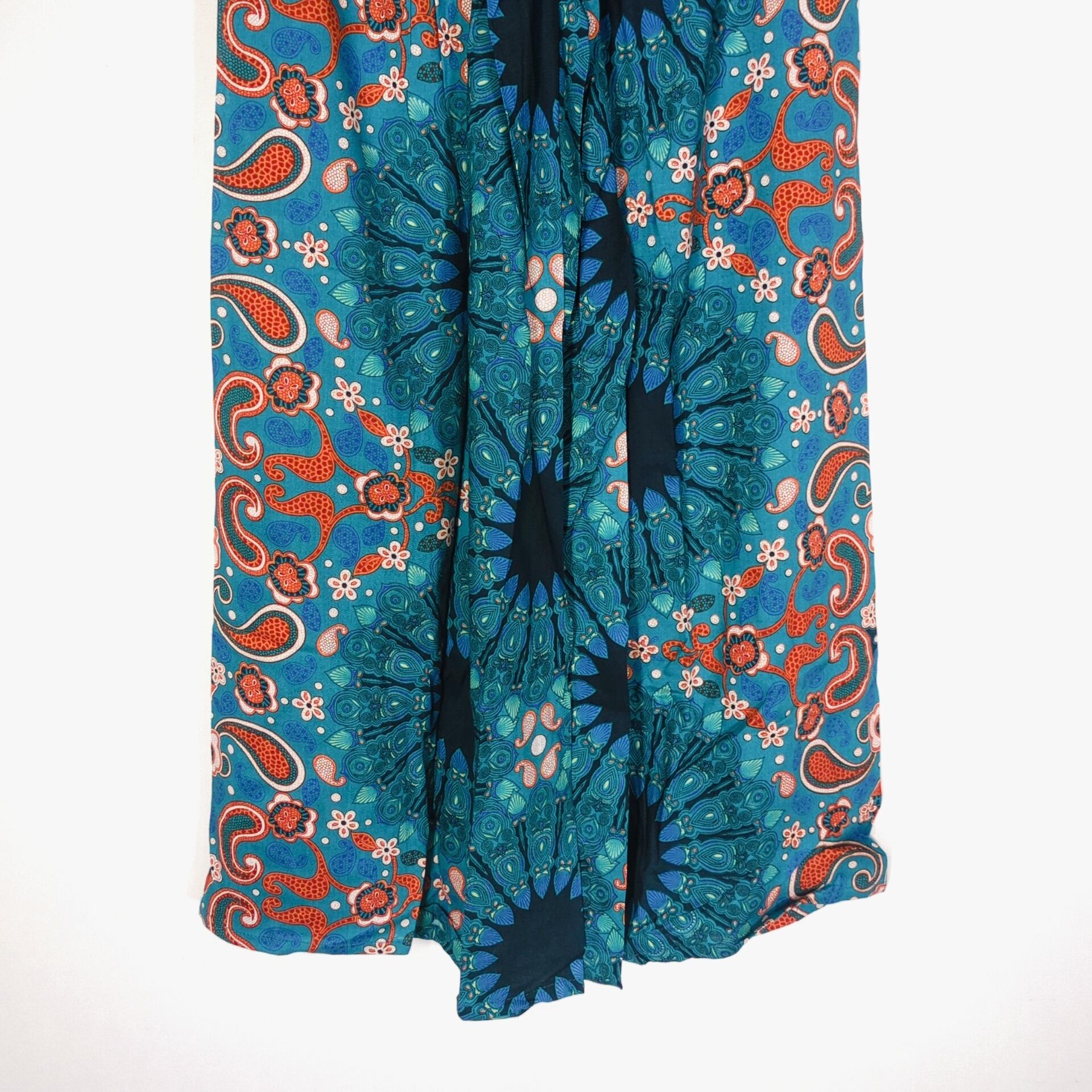 タイパンツ/スリットパンツ 花柄曼荼羅 青緑 瞑想ヨガ レーヨン L T03