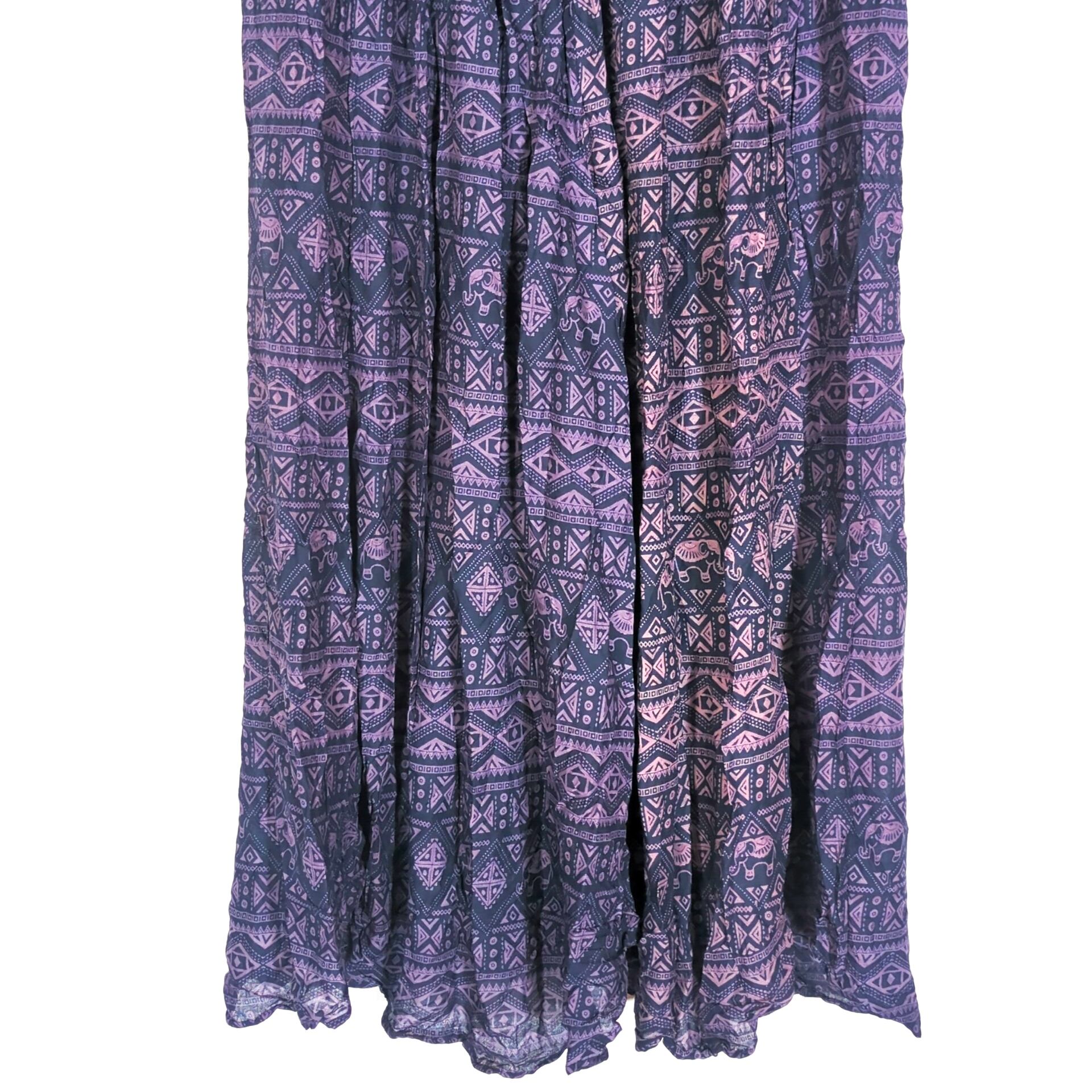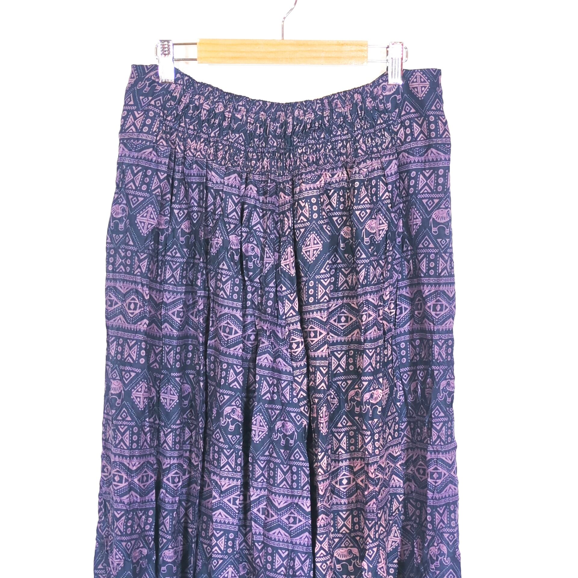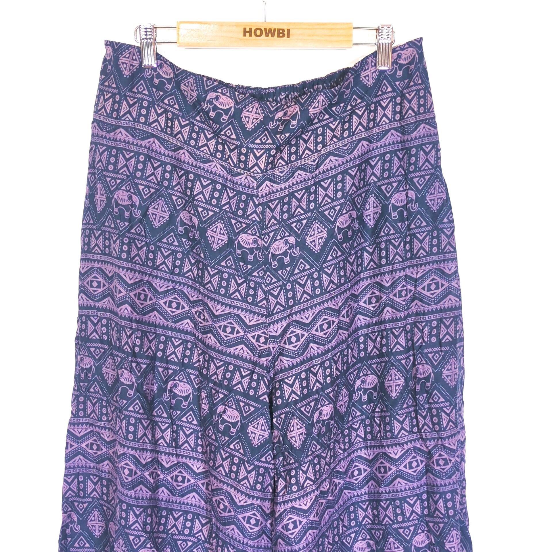 大き目サイズ キュロットタイプ タイパンツ 紫 紺 ゾウ柄 X12
