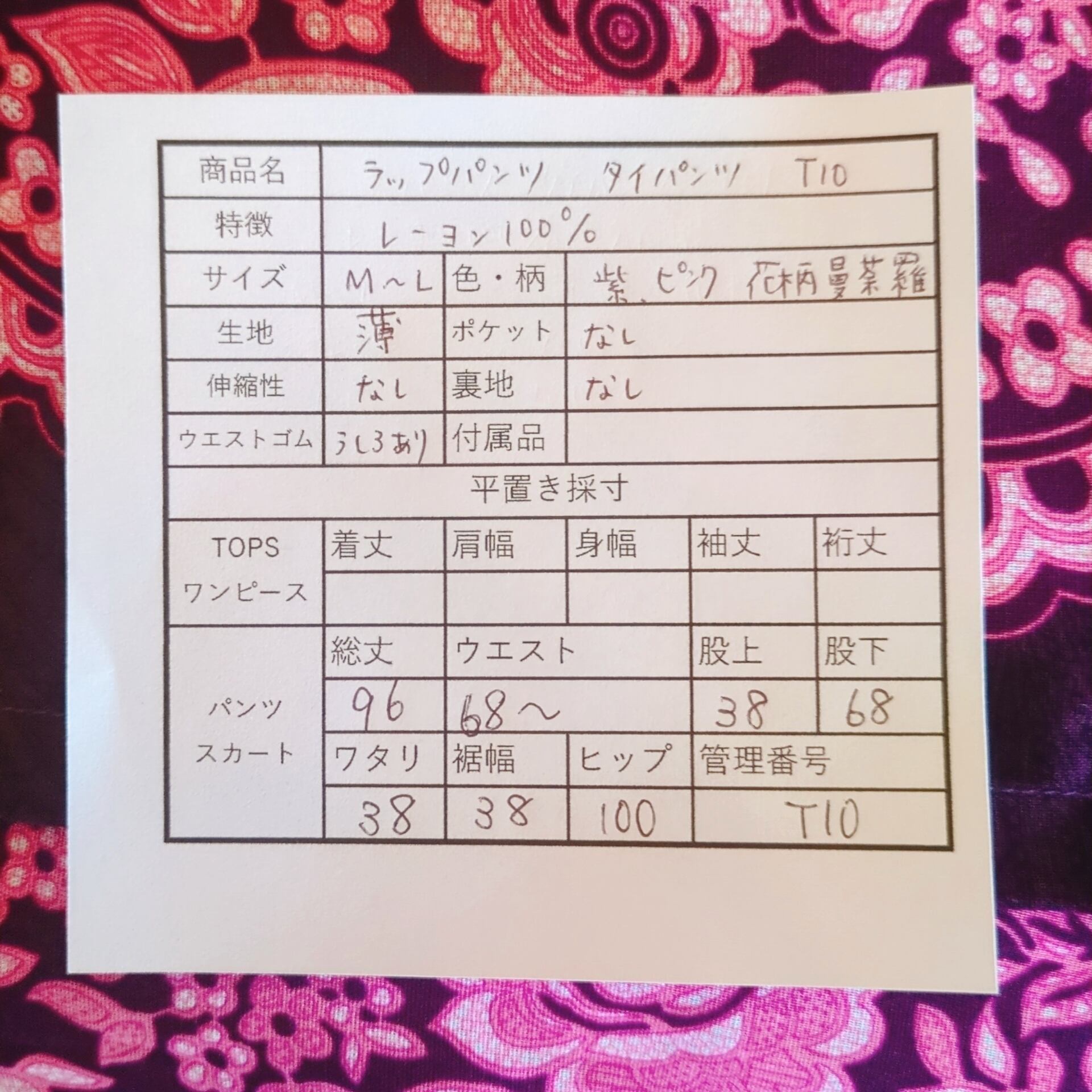 【背景】チェンマイで買い付けたタイパンツです。