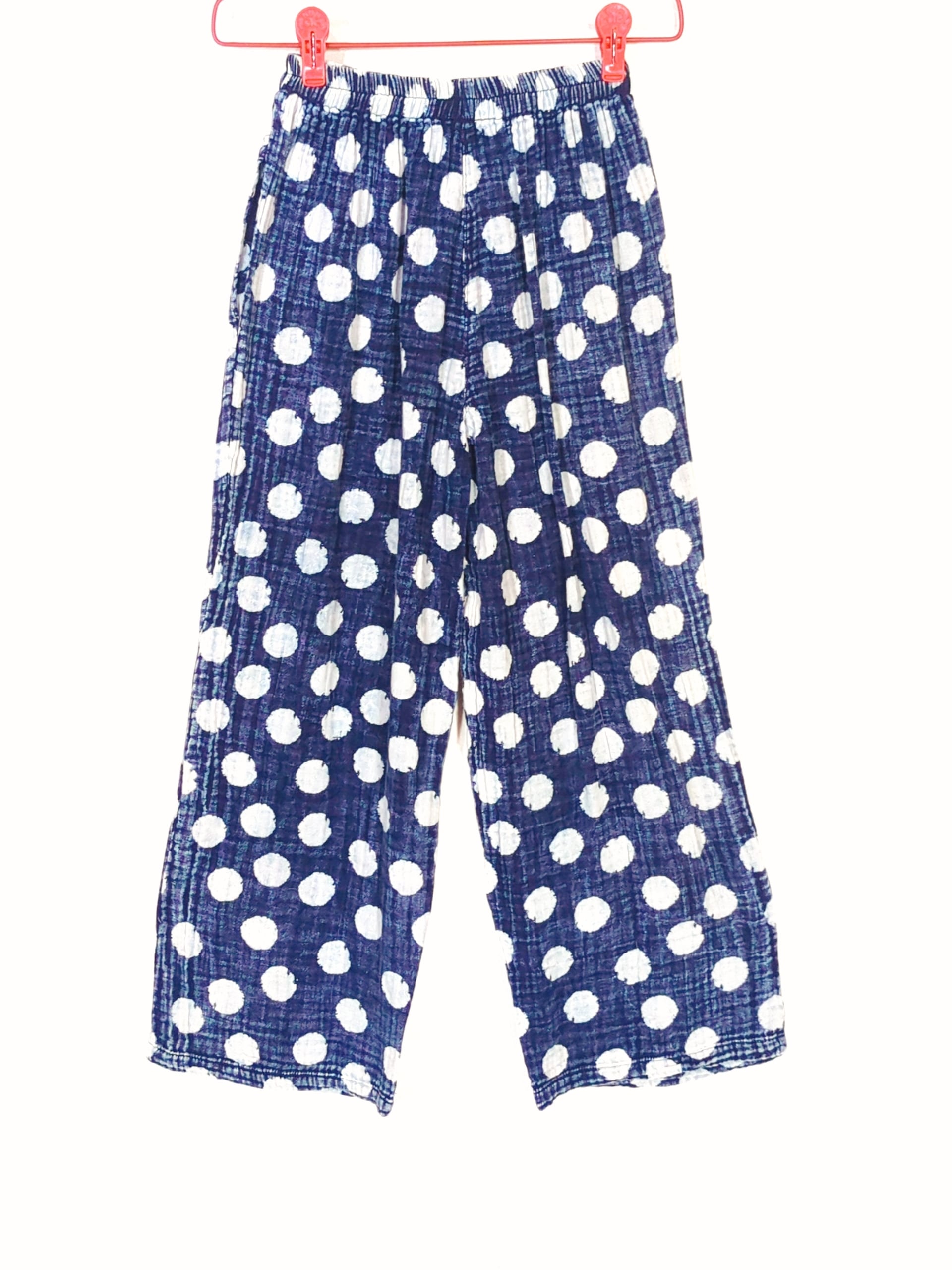【おしゃれで快適】インディゴパンツ 水玉 ウエストゴム IN05