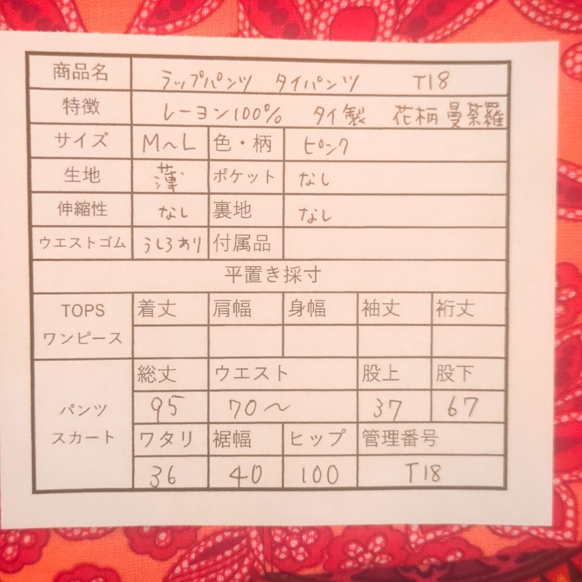 【背景】チェンマイで買い付けたタイパンツです。