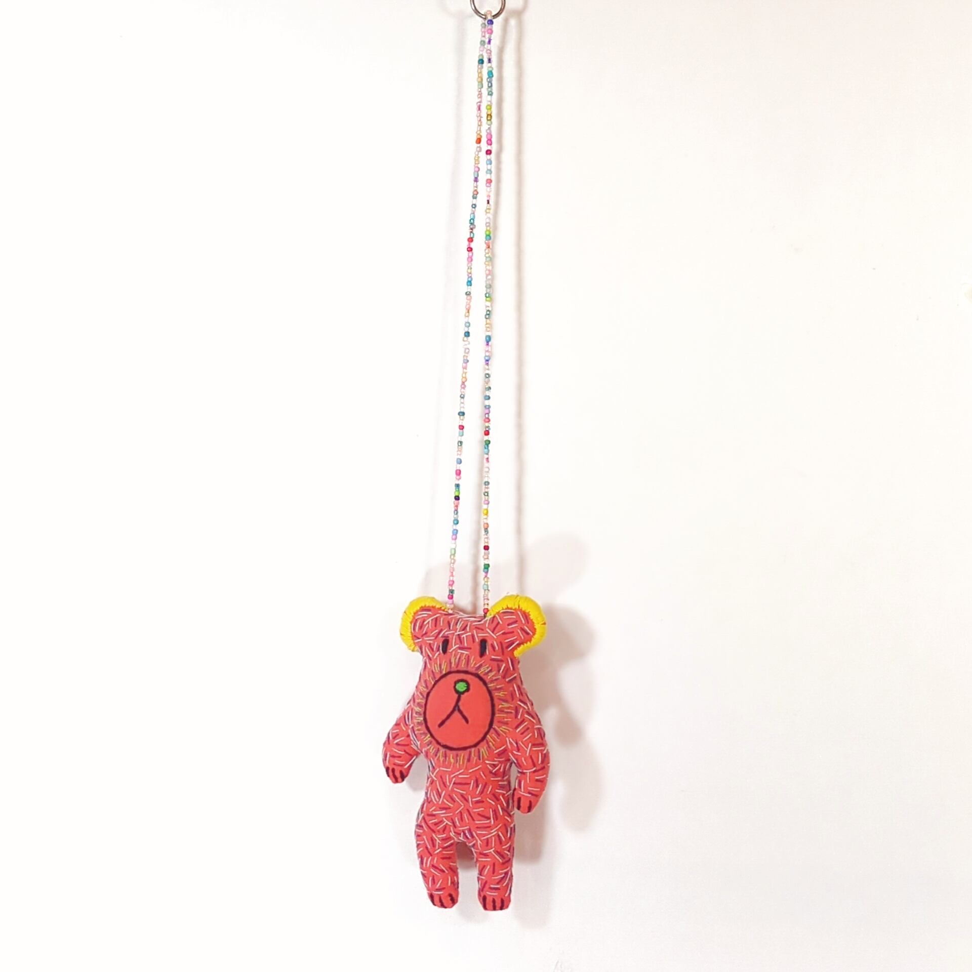 クマさん 紐付き 癒し 一点もの シュール ピンク ハンドメイド タイ雑貨