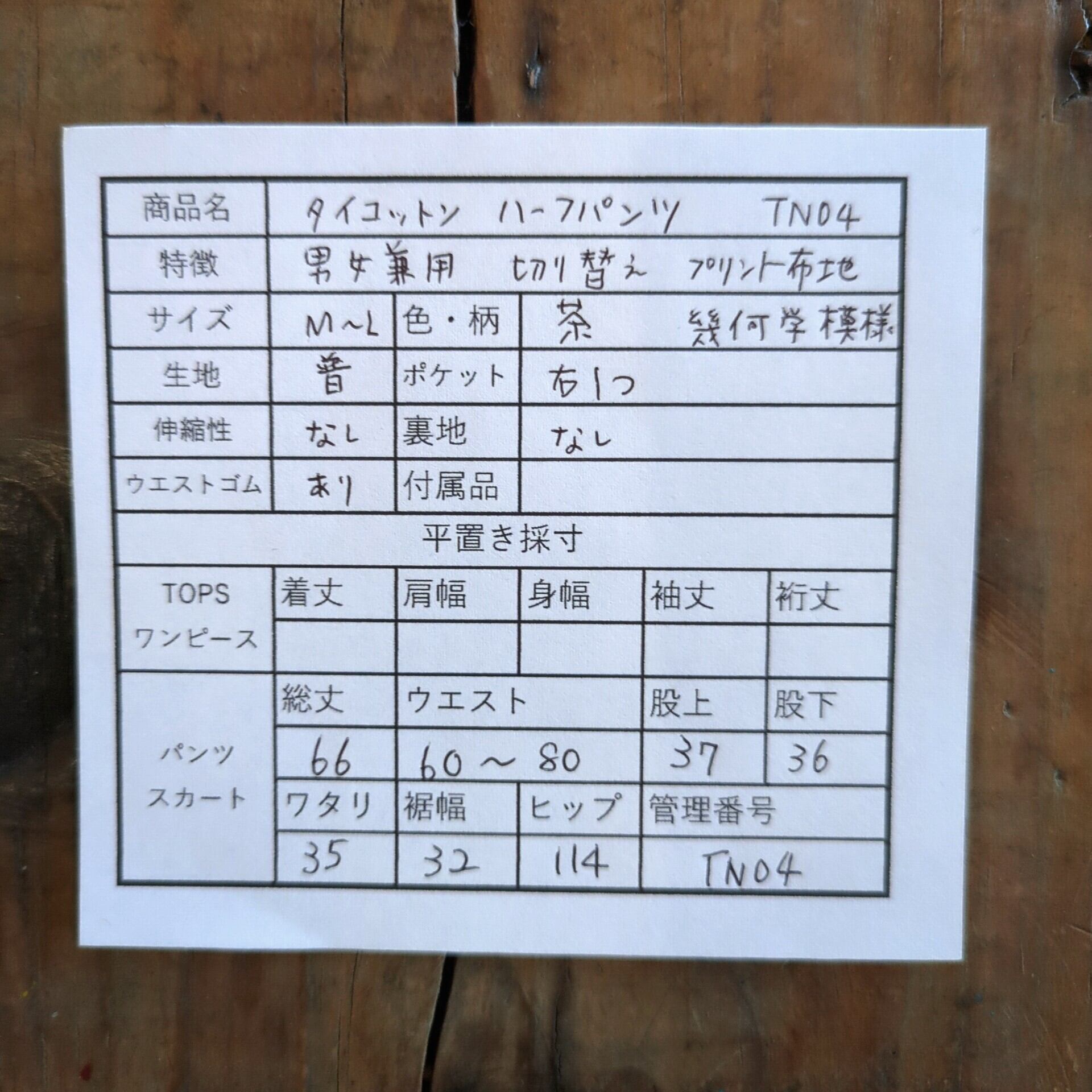 sale タイコットン ハーフパンツ TN04