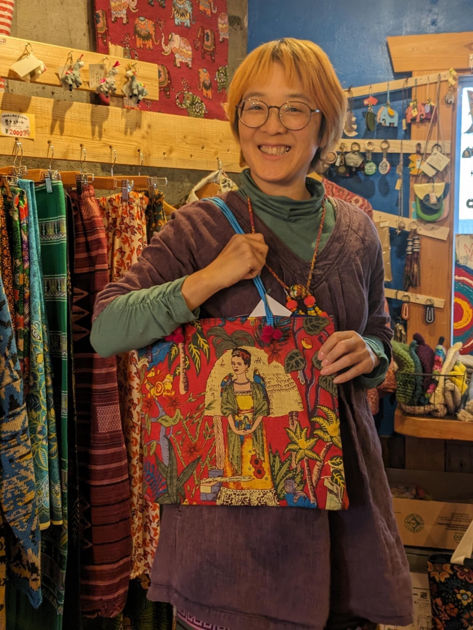 Jing Jai marketで見つけたシュールな人柄のハンドメイドバッグ